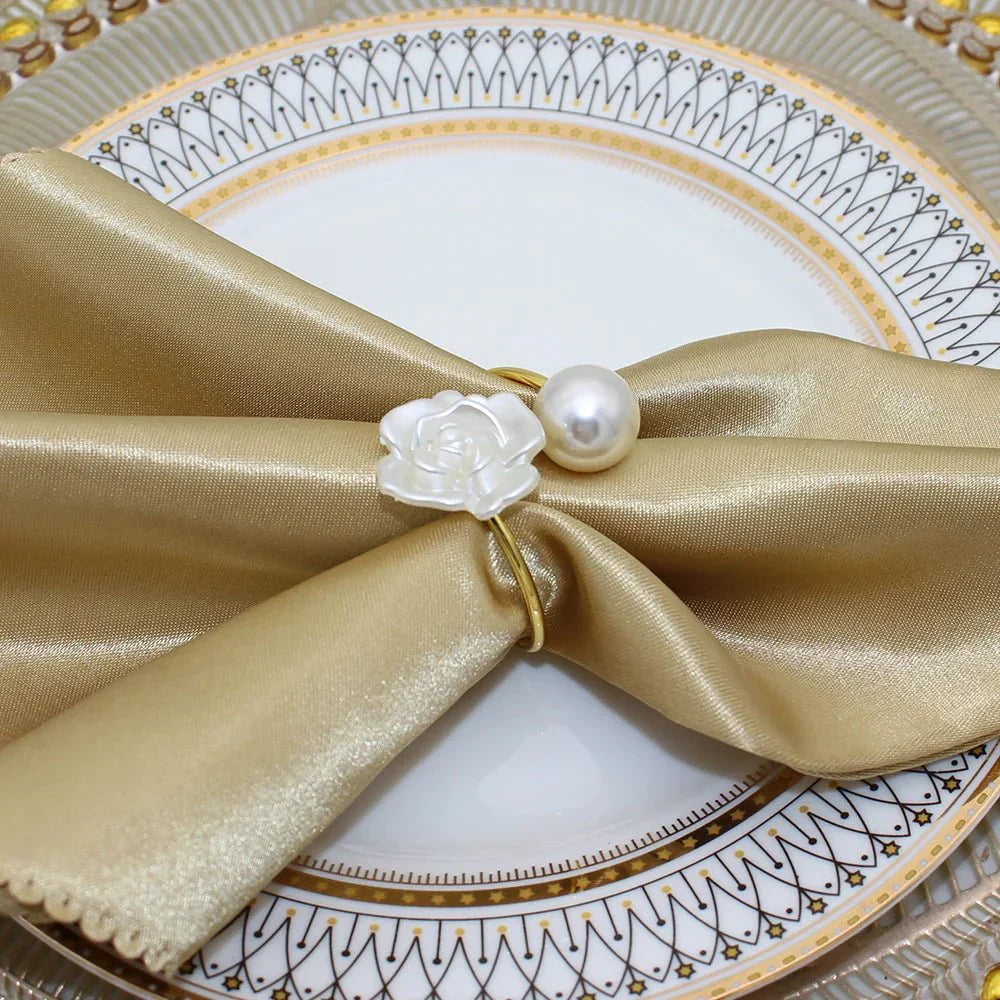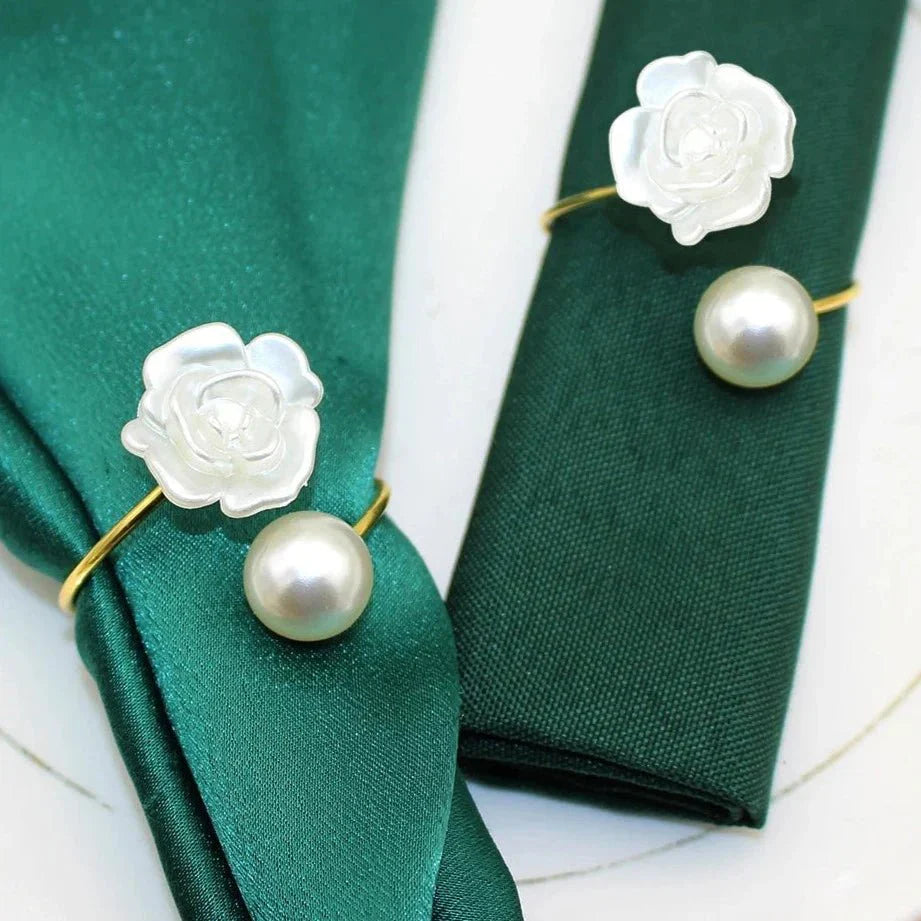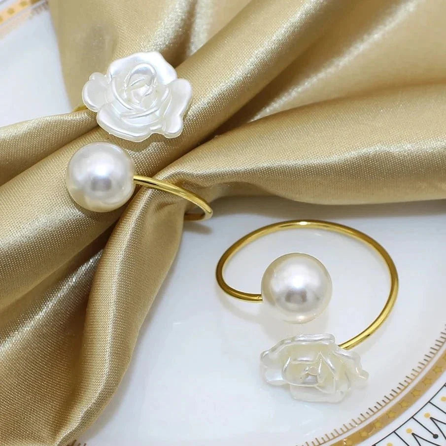 Adicione um toque de elegância à sua mesa com estes Anéis de Guardanapo com Pérola. Perfeitos para ocasiões especiais como casamentos, jantares de Natal ou qualquer evento onde você deseja impressionar. A beleza das pérolas proporciona um charme clássico e sofisticado à sua decoração de mesa. Um toque refinado para realçar a experiência à mesa.
