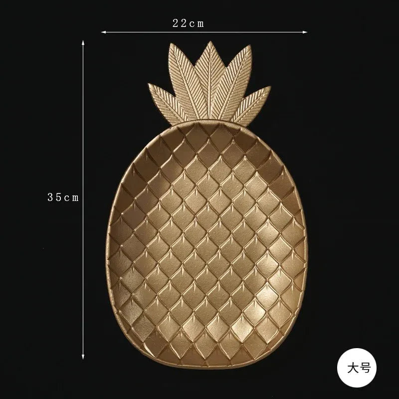 Bandeja Decorativa Nórdica em Formato de Frutas e Folhas - Adicione um toque encantador à sua decoração com esta elegante bandeja. Com design inspirado na natureza, esta peça é perfeita para servir ou decorar sua casa com estilo e sofisticação. Ideal para organizar pequenos objetos, servir petiscos ou adicionar um toque de charme à sua mesa. Seu formato delicado e detalhes de folhas douradas tornam-na uma adição encantadora a qualquer ambiente. Eleve sua decoração com esta bandeja funcional e cheia de elegância.