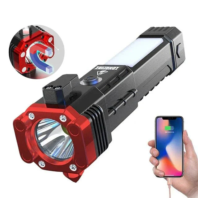 Function: working light, high-hardness alloy safety hammer, emergency knife, power bank, strong magnetic magnet